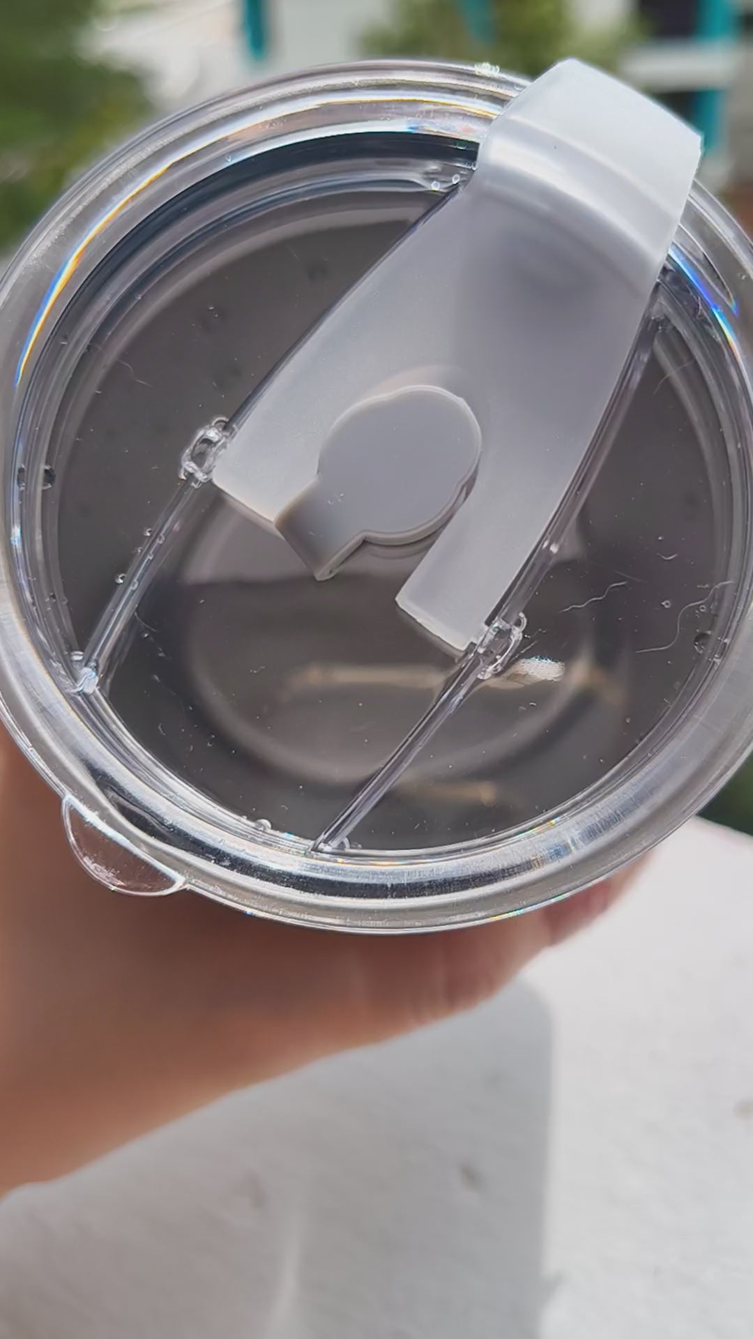 Gently wipe the rim of the cup and the silicone seal dry before closing. Keep the spout or straw opening open while securing the lid, then close it only after the lid is fully in place.